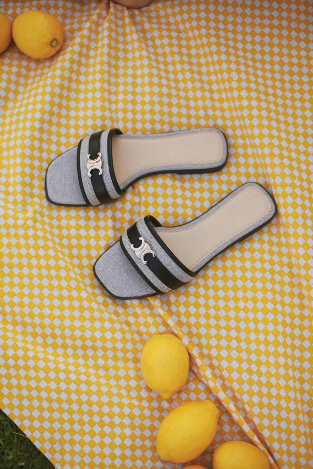 Sandalias negras con doble tira y detalle metálico, para un look casual con acento chic.
